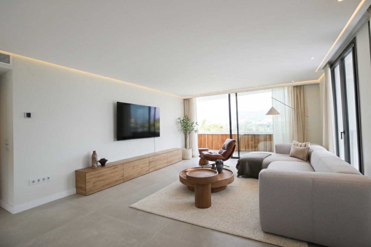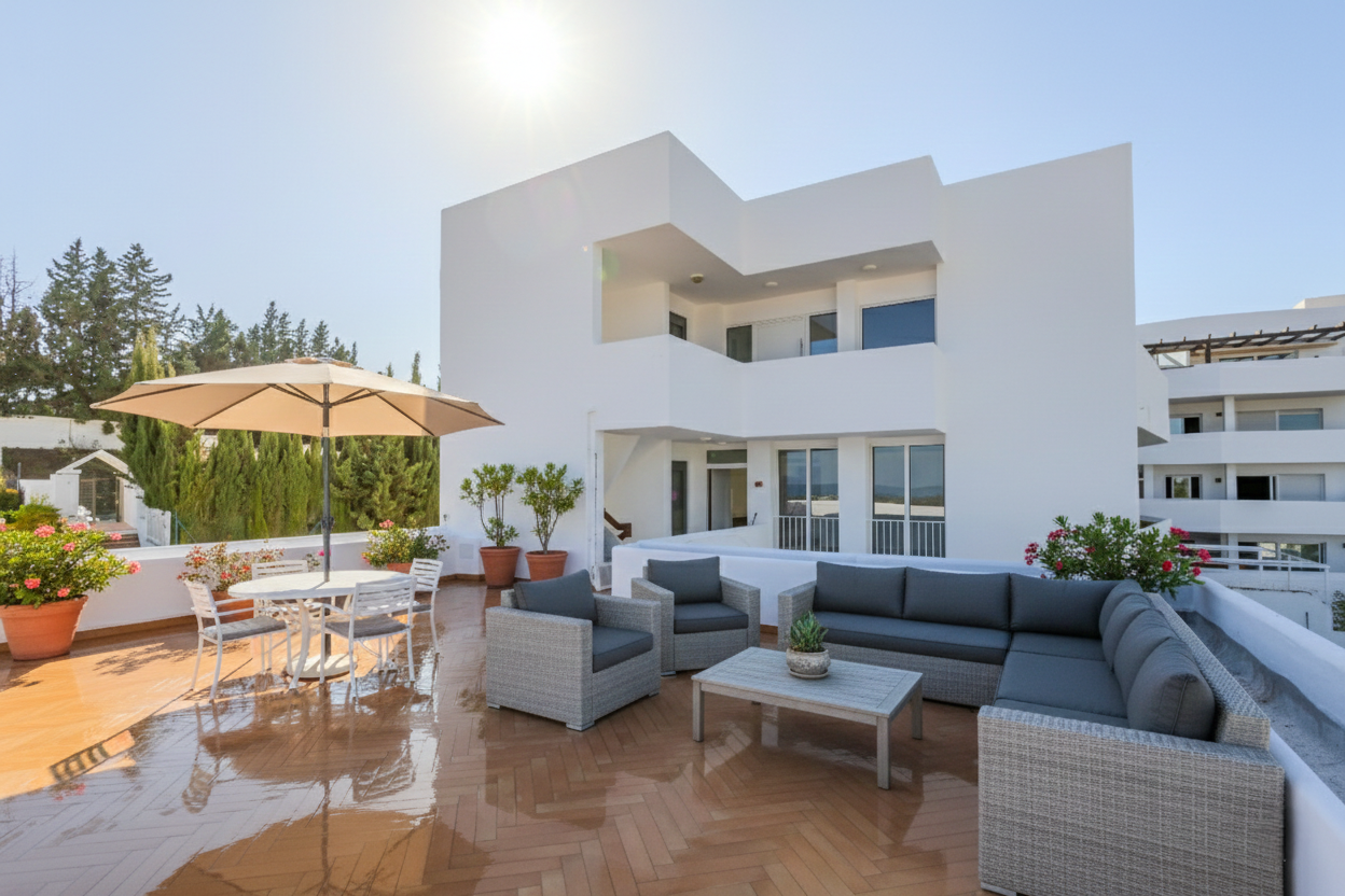 Hermoso apartamento de dos dormitorios en la comunidad cerrada de Jardines de Andalucía, Nueva Andalucia. Esta propiedad tiene una amplia y luminosa cocina abierta, salón y comedor; dormitorio de invitados y baño; y una suite principal; todas las habitaciones tienen acceso directo a una terraza privada. Sin duda, la terraza es el corazón de la propiedad; con más de 40m2, este espacio exterior es el lugar ideal para disfrutar de vistas panorámicas que combinan la majestad del mar y la belleza de las montañas. Otras características incluyen: armarios empotrados, aire acondicionado, una plaza de aparcamiento privado y trastero. El complejo en sí está cerca de todas las comodidades de ocio, campos de golf y playas, lo que lo convierte en un gran alquiler de vacaciones o casa todo el año. Hay varias unidades en venta con opciones de reforma o apartamento listo clave.