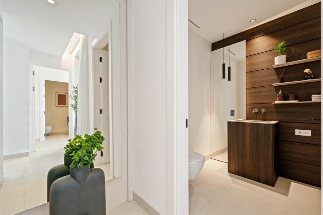 Exclusivo nuevo desarrollo que consta de 50 apartamentos de alta gama, ubicado en una zona privilegiada en la cima de La Quinta, en Benahavis, cerca de El Madronal. Este proyecto único enfatiza una integración perfecta entre el espacio habitable e impresionantes vistas panorámicas tanto del mar como de las montañas.Características clave:Diseño y Lujo: Cada unidad cuenta con acabados de alta calidad proporcionados por Gunni & Trentino, resaltando la elegancia moderna y la comodidad.Comunidad Privada: El desarrollo ofrece seguridad las 24 horas, asegurando la tranquilidad de los residentes.Amenidades de Clase Mundial: Los residentes tendrán acceso a amenidades lujosas que complementan el estándar de vida de alta calidad esperado en la zona.Son 50 apartamentos de alta gama disponibles con distribuciones de 2, 3 o 4 dormitorios, incluyendo opciones dúplex que varían de 130 a 473 m², todos con amplias terrazas y piscinas privadas, destacando una calidad excepcional y acabados impresionantes en todo el complejo. Cuentan con espacios de sala y comedor bellamente diseñados, junto con una cocina completamente equipada con electrodomésticos de primera calidad. El dormitorio principal irradia elegancia y generosidad, mientras que los dormitorios familiares proporcionan amplios espacios habitables. Los baños exhiben una sofisticación moderna. La propiedad cuenta con una generosa piscina rodeada de jardines exuberantes, así como áreas comunes y servicios de última generación dentro de un complejo cerrado y seguro, en el punto más alto de la urbanización, un lugar tranquilo rodeado de naturaleza y que ofrece vistas panorámicas a la bahía de Marbella y al mar Mediterráneo, a solo diez minutos de Puerto Banús.La construcción de este desarrollo ya está en marcha, lo que lo convierte en una opción atractiva para aquellos que buscan invertir en una vivienda de lujo en un entorno pintoresco.