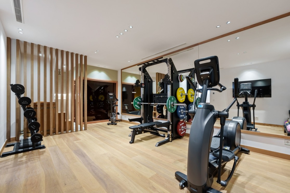 Una impresionante propiedad que ofrece impresionantes vistas panorámicas al mar Mediterráneo, la montaña de La Concha y el campo circundante.Al entrar en el magnífico recibidor, la atención se centra inmediatamente en los acabados interiores de alta calidad y las vistas despejadas al mar que se extienden sobre el impresionante jardín infinito y la piscina climatizada.Esta moderna villa se distribuye en tres plantas y presenta un diseño diáfano con cinco dormitorios, cada uno con baño en suite.Además, cuenta con un total de siete baños, un atrio central llamado "Patio Andaluz" con techo retráctil de cristal con control remoto, dos salones, un comedor, una cocina de alta gama equipada con electrodomésticos Gaggenau, un despacho y un gimnasio en la planta baja equipado con máquinas Technogym.La propiedad ofrece climatización completa y combina suelos de roble escandinavo con superficies de porcelana de la más alta calidad.Cuenta con dos impresionantes puertas de entrada que conducen a una zona de aparcamiento interior con capacidad para varios coches.Un patio ajardinado con una hermosa fuente realza el entorno, mientras que un amplio garaje subterráneo y un trastero ofrecen amplio espacio para guardar cosas.Para garantizar la seguridad de sus residentes y sus pertenencias, la propiedad está vallada y equipada con un sofisticado sistema de alarma Target, cámaras de vigilancia y un sistema de intercomunicación, que proporciona protección y tranquilidad las 24 horas.Situada en la prestigiosa Urbanización Monte Halcones, la propiedad goza de una ubicación privilegiada, a solo unos minutos a pie de un centro comercial cercano y a un corto trayecto en coche de los servicios de San Pedro, Benahavís y Puerto Banús, así como de los campos de golf de La Quinta y Los Arqueros.Se puede acceder a la Urbanización Monte Halcones desde la famosa carretera de Ronda y se encuentra por debajo de El Madroñal y La Zagaleta.