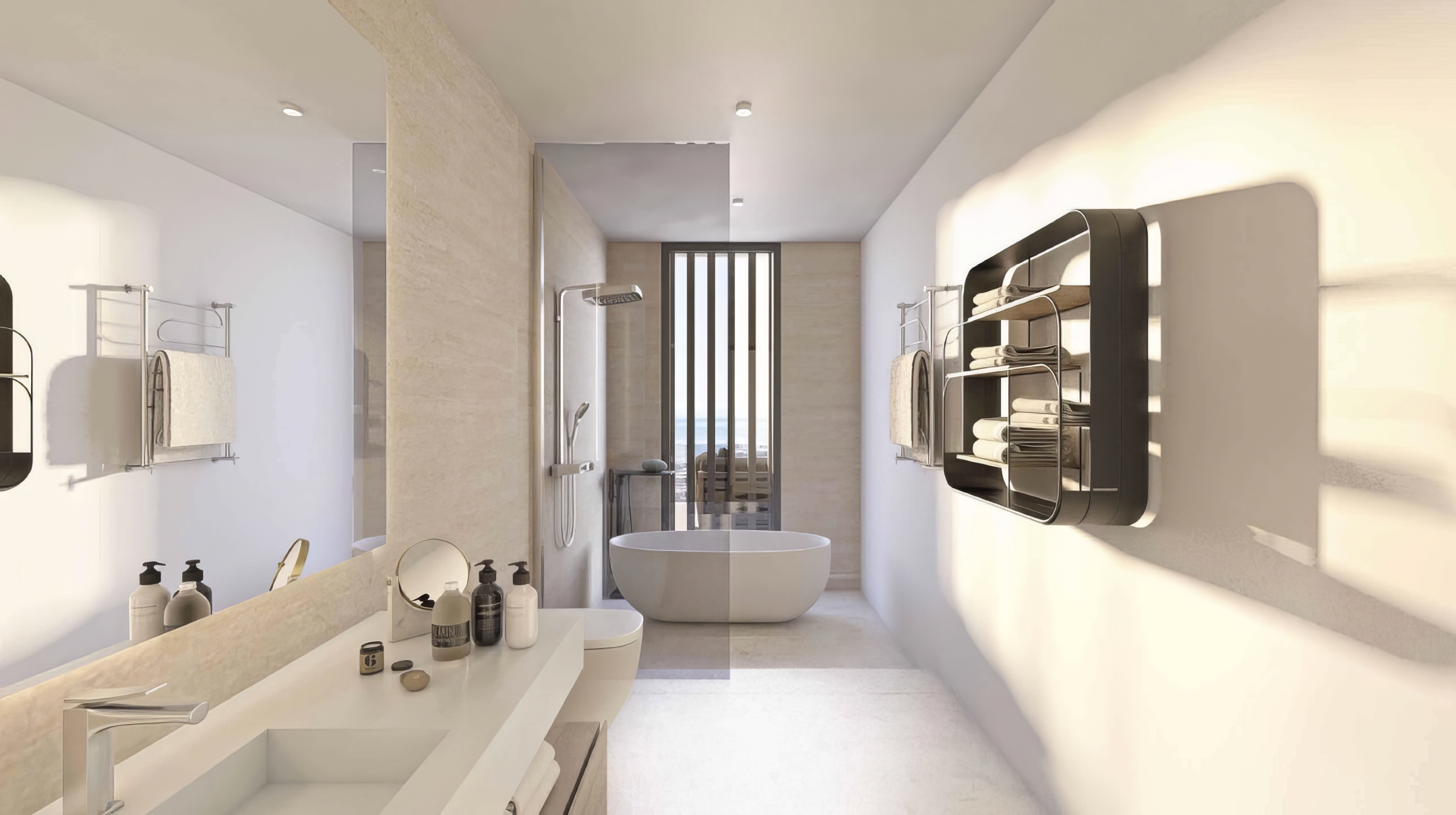 Las villas cuentan con características exclusivas y acabados de alta gama, incluyendo cuartos de baño totalmente equipados con mamparas de ducha de cristal, armarios empotrados de alta calidad y un sistema aerotérmico Hisense que optimiza la eficiencia energética.