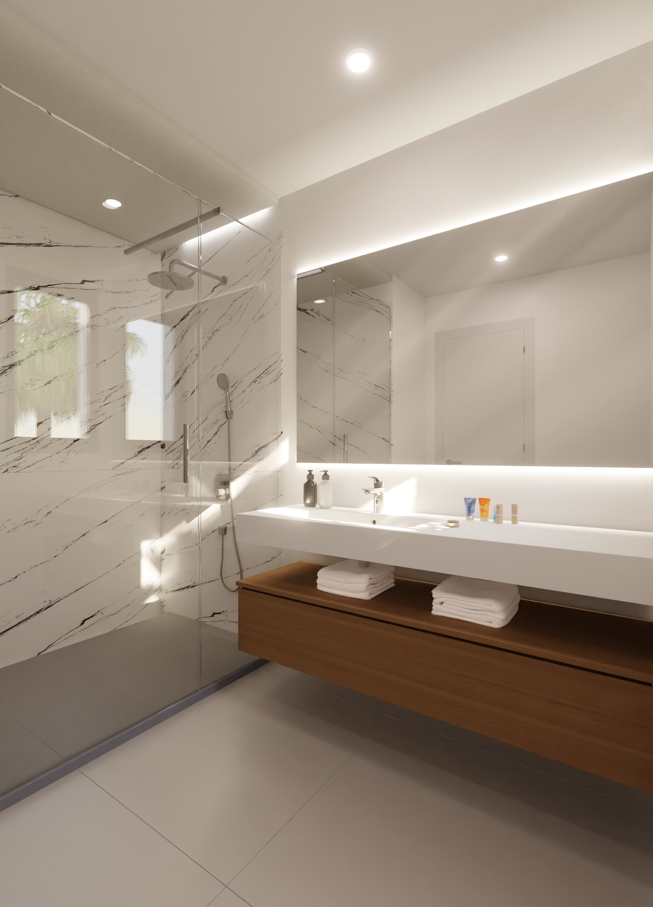 Higueron North Residences ofrece una experiencia única en el hotel, donde los residentes pueden beneficiarse del uso de las instalaciones conectadas de cinco estrellas, incluyendo recepción 24 horas, seguridad y servicios de estilo resort. Hay villas de cuatro dormitorios y apartamentos de dos o tres dormitorios disponibles en este desarrollo. Cada amplia residencia está pensada con dos dormitorios, ofreciendo flexibilidad a través de una puerta corredera alargada que permite a los residentes dividir los espacios vivos como se desee. Las amplias ventanas de la sala de estar y los dormitorios inundan los interiores con luz natural, mejorando la calidez de los acabados de madera que caracterizan el diseño. En el corazón de la casa se encuentra la cocina italiana, con una elegante isla de mármol que complementa elegantemente los tonos cálidos y terrenales de los interiores. La terraza exterior extiende el espacio habitable, invitando a las fragancias del Mediterráneo interior, creando una fusión perfecta de la vida interior y exterior. El resultado es un tranquilo retiro inspirado en la naturaleza donde los residentes pueden disfrutar de la belleza de su entorno desde la comodidad de sus hogares.